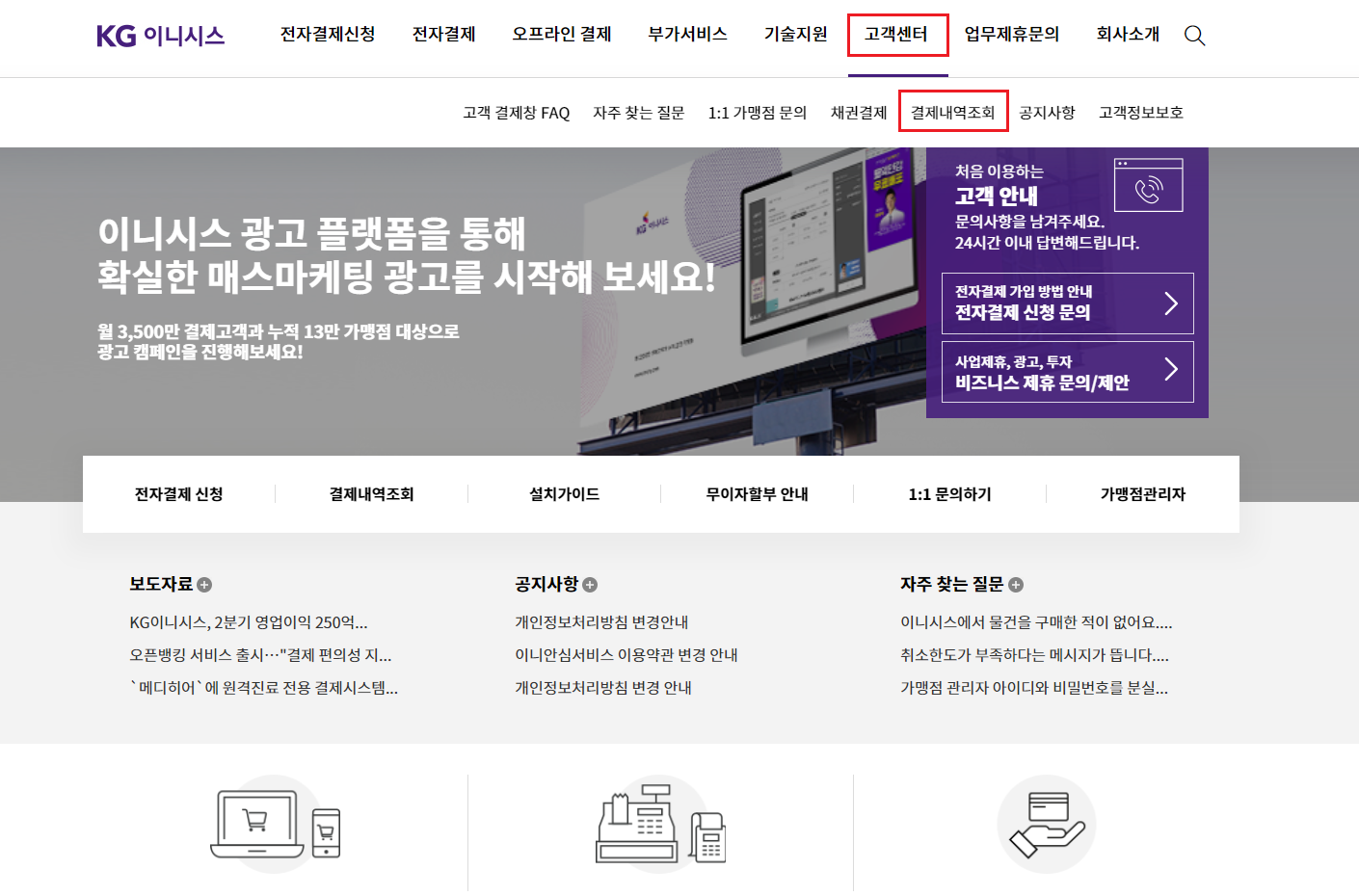 2. KGÀ̴Ͻýº ȨÆäÀÌÁö(www.inicis.com)ÀÇ °áÁ¦³»¿ª Á¶È¸¿¡¼ Ãâ·ÂÇÏ½Ç ¼ö ÀÖ½À´Ï´Ù.